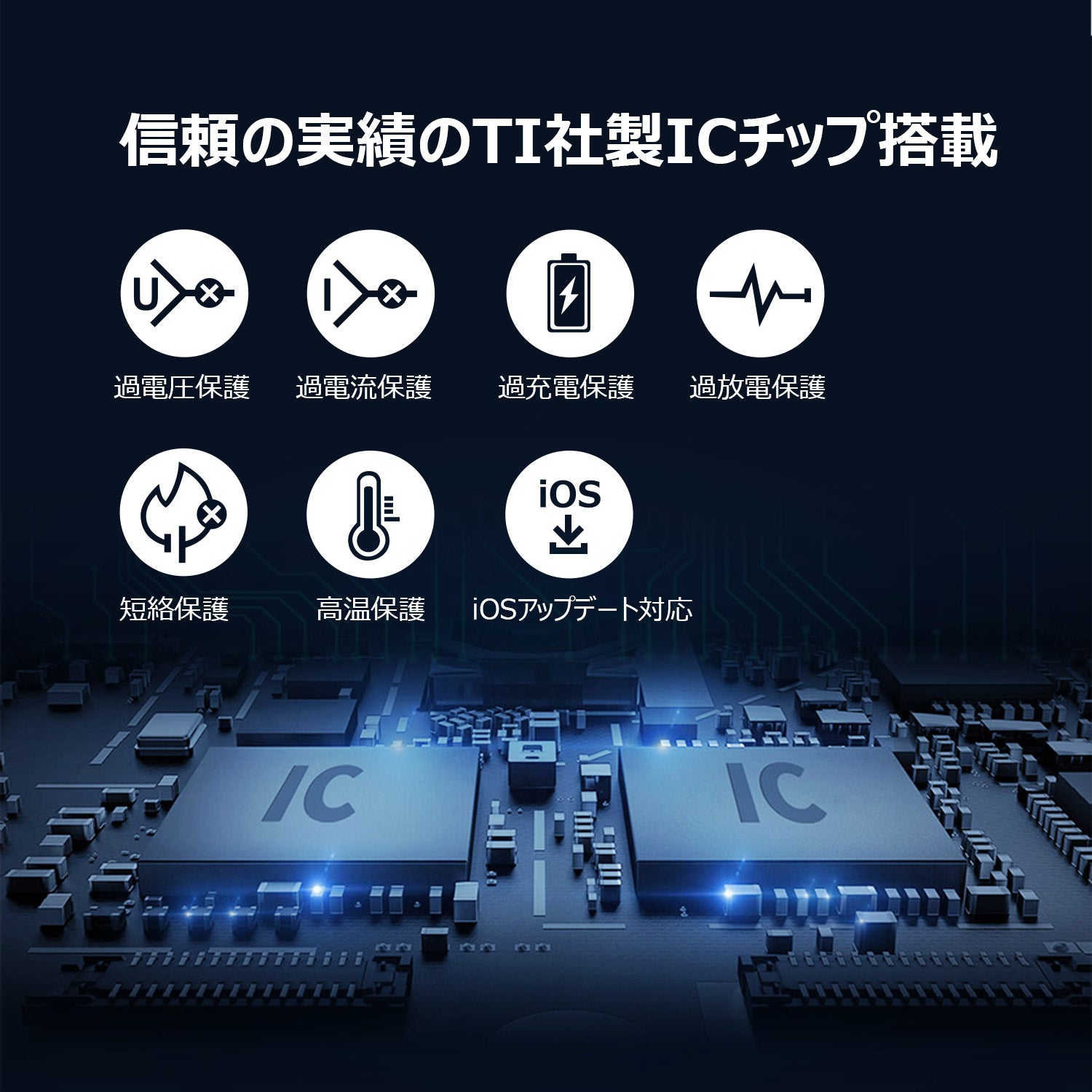 オリジナルと同様のTI社製ICチップを使用しています。iOSのアップデートにも対応しているので、アップデート後も安心してお使いいただけます。